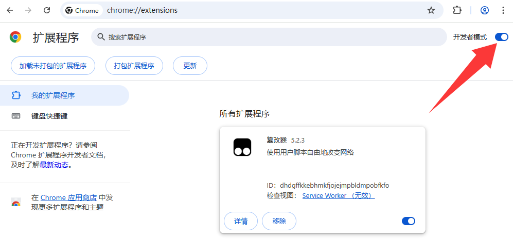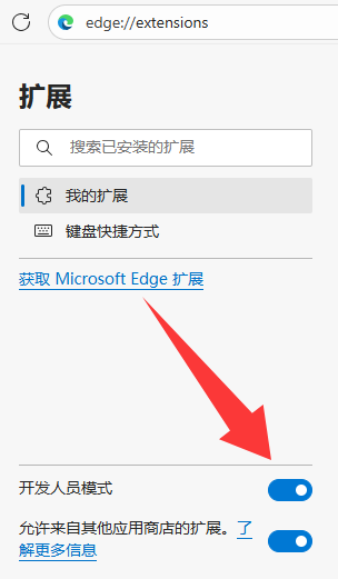 - 打开浏览器的 管理扩展程序 设置(edge://extensions/ 或 chrome://extensions/),启用 开发者(人员)模式。
